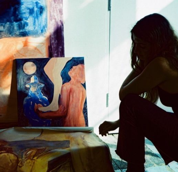 Kitty Rice is a British painter currently based in south London. She made the switch to painting from designing via the post-graduate programme at the Royal Drawing School in 2022. Her recent series has a strong influence of the surreal, drawing memorised compositions in a process which was conceived by the Automatists. She explores themes of feminine strength as seen through a child’s eyes. Her memories often rest in a place of pre-adolescent understanding of the adult, sexual world. Often verging on the sinister or melancholy, these memories are visited through a now adult grasp of the same subject.