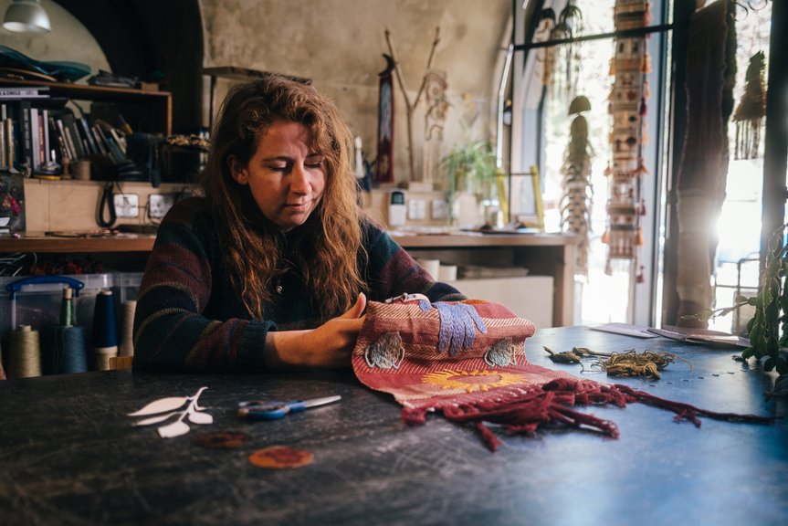 The Art StudioAlice Hume is a Textile Artist and Weaver who creates contemporary woven wall decor, hanging copper moons and earrings. She has studied weaving in Sweden and Japan, created giant plant moon weaves, fluffy merino wool hangings for window displays in Covent Garden and demonstrated at Chelsea Flower Show. She will be back at Wilderness for her sixth year to run seventies style macrame workshops.