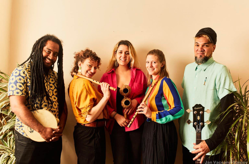 The JumpyardOlayá is a female-led flute and percussion band inspired by Northeastern Brazilian bandas de pifanos (bamboo flutes), with the elemental force of flutes, rich vocal harmonies, driving percussion and bass. Olayá’s music is heavily rhythmic and contagiously fun, a fresh take on a traditional Brazilian sound never before heard in the UK!